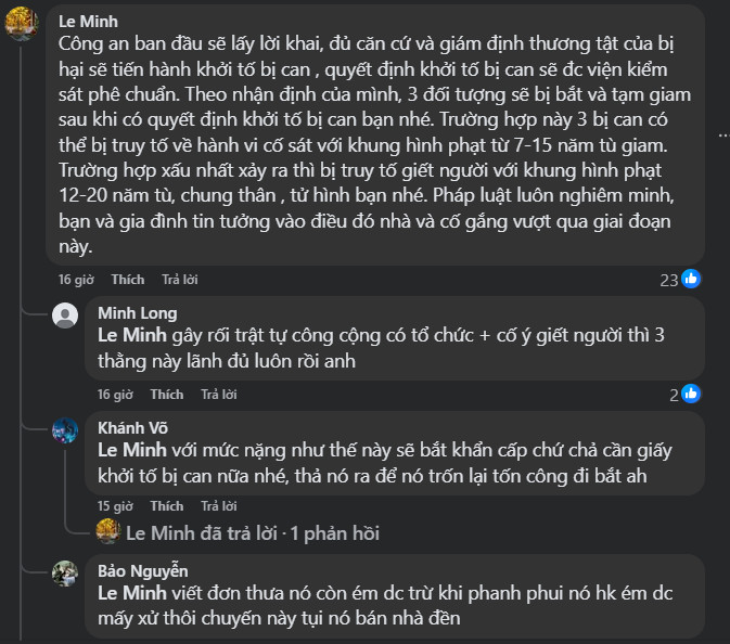 Tuy nhiên, nhóm đối tượng tỏ thái độ bức xúc, xảy ra cãi vã với gia đình ông P.A. Sau đó, Tuấn quay về phòng trọ gần đó, lấy hai con dao tự chế rồi quay lại hiện trường, rượt đuổi và chém anh P.T., khiến nạn nhân bị thương ở hai chân, hay tay và vùng bụng