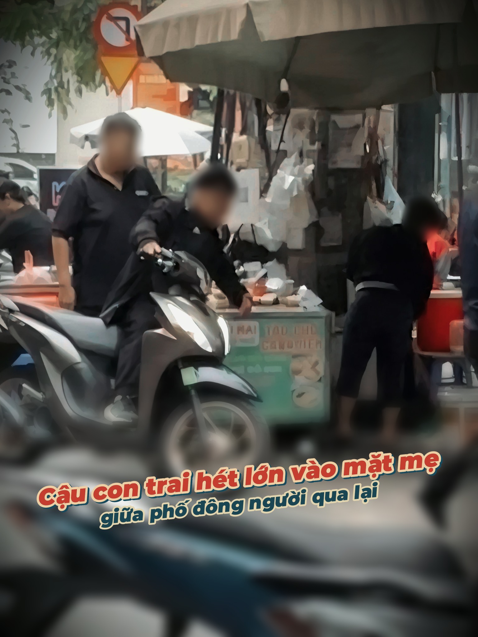 Theo lời kể của cô gái chứng kiến, một thanh niên mặc áo đen đang đứng cãi vã và gay gắt với mẹ ruột ngay giữa đường. Bên cạnh là cậu bạn thân áo xanh, đeo kính, ngồi trên chiếc Wave dựng sát lề.
