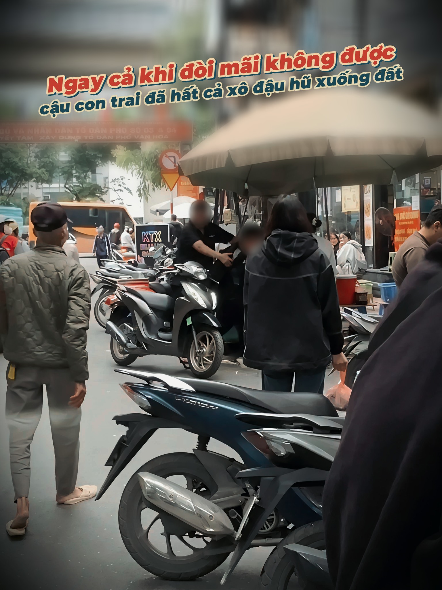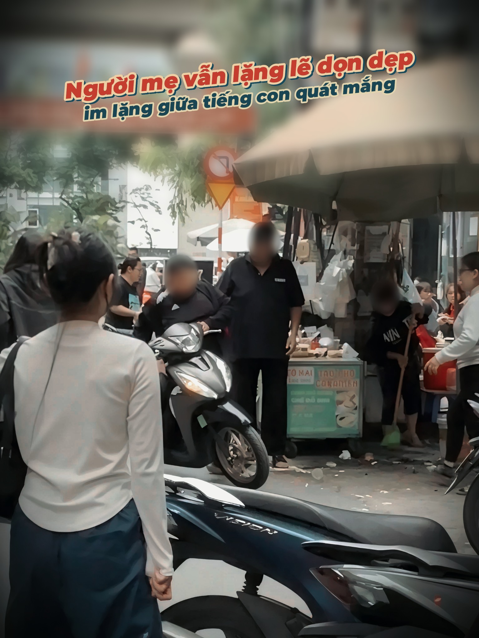Người mẹ không khóc, không oán trách, chỉ lặng lẽ cúi nhặt từng món, vừa tiếp tục làm cho mấy sinh viên đang ngồi ăn ở quán như chẳng có gì xảy ra.