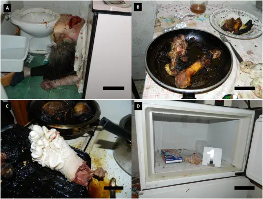 Khi tiếp cận hiện trường, lực lượng chức năng phát hiện người phụ nữ đã tử vong trong phòng tắm, thi thể có nhiều dấu hiệu bị x.a.m h.a.i n.g.h.i.ê.m t.r.ọ.n.g. Trong khu vực nhà bếp và tủ đông, cơ quan điều tra thu giữ nhiều phần cơ thể người có dấu hiệu bị x.ử l.ý bằng nhiệt.