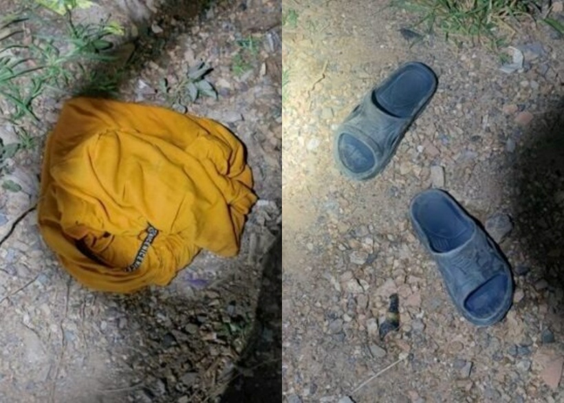 Lực lượng chức năng tìm thấy một chiếc áo màu vàng và một đôi dép được cho là của nạn nhân. Ảnh: Khaosod.