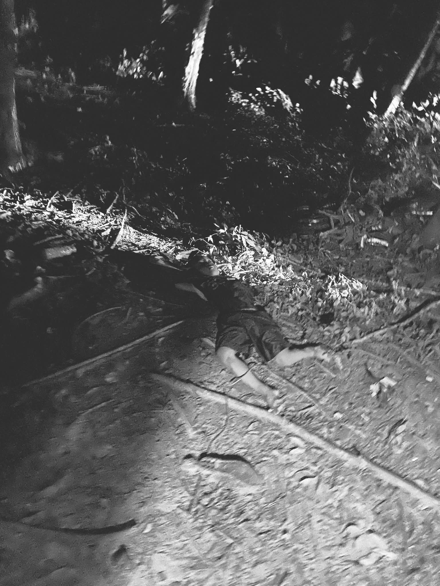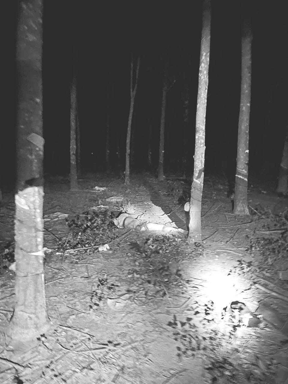 Vụ va chạm làm chiếc xe máy và 3 mẹ con chị V. bị ô tô ủi văng vào rừng cao su ven đường.