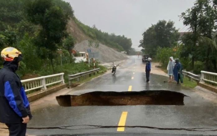 Cầu Ca Da sạt lở tạo hố sâu sau mưa lớn, gây nguy hiểm cho người đi qua, nhưng may mắn không có thương vong, tuyến đường bị phong tỏa.