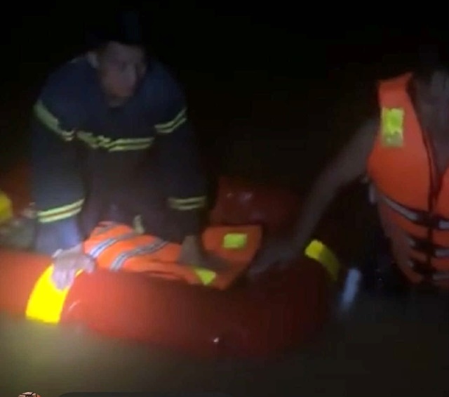 Cơ quan chức năng kịp thời cứu 7 người bị lật xuồng ở Lạng Sơn. Ảnh cắt từ clip.