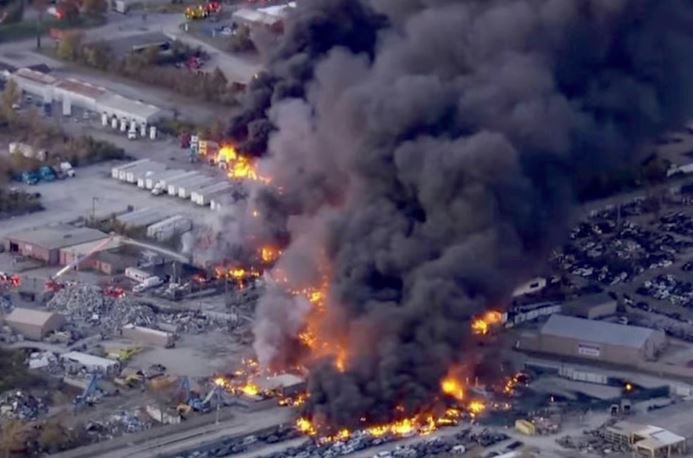 Vụ tai nạn đã gây ra một đám cháy cực lớn. Hình ảnh từ truyền thông Mỹ cho thấy cột khói đen bốc cao hàng km, có thể được nhìn thấy từ rất xa.