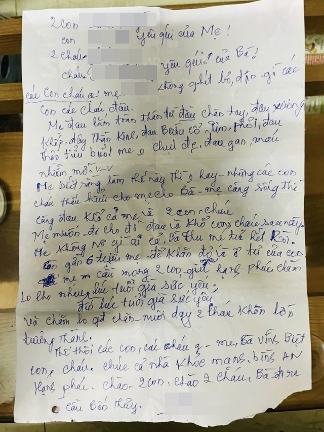Trong thư, bà N khẳng định mình không ghét bỏ hay giận gì con cháu, mà vì có quá nhiều bệnh tật, đau đớn toàn thân nên bà không chịu được.