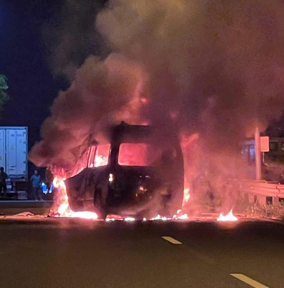 Khoảng 0h15 cùng ngày, xe cứu thương (loại 12 chỗ) do nam tài xế cầm lái chạy vào đường dẫn vào trạm dừng chân cao tốc TP.HCM – Long Thành – Dầu Giây (km41) thì tông vào đuôi xe container (đang đỗ tại dốc lối vào trạm dừng nghỉ) và bốc cháy dữ dội.