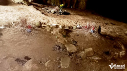 3 ngôi mộ trong hang động. Ảnh: Trần Nghị“Từ bìa rừng vào động khoảng 4km, đi bộ trên cây cầu dài hơn 100m đến khu vực núi đá vôi, tiếp đó phải leo hơn 200 bậc đá để đến được cửa động.Cửa động rộng khoảng 10m, cao khoảng 20m. Trong động có nhiều nhũ đá, khi gõ vào phát ra những âm thanh như tiếng cồng, tiếng chiêng của người Mường”, ông Cường cho hay.