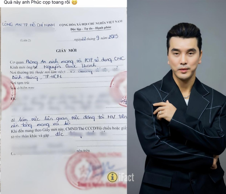 Chiều 21/9, mạng xã hội xuất hiện thông tin Ưng Hoàng Phúc đã được mời lên làm việc sau những ồn ào liên quan đến MV “Anh em trước sau như một”. Theo đó, nhiều người chia sẻ ảnh chụp một tờ giấy mời được cho là của Phòng an ninh mạng và phòng chống tội phạm sử dụng công nghệ cao, Công an TP.HCM gửi cho Nguyễn Quốc Thanh (tên thật của Ưng Hoàng Phúc), để làm việc về việc đăng tải MV trên nền tảng mạng xã hội.