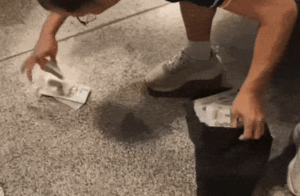 Nội dung clip cho thấy, một phụ nữ mặc áo kẻ bị một người khác giữ lại, liên tục kêu “gọi công an đến”. Trong khi đó, nhiều người xung quanh tranh thủ nhặt những cọc tiền vung vãi trên sàn, bỏ vào túi.